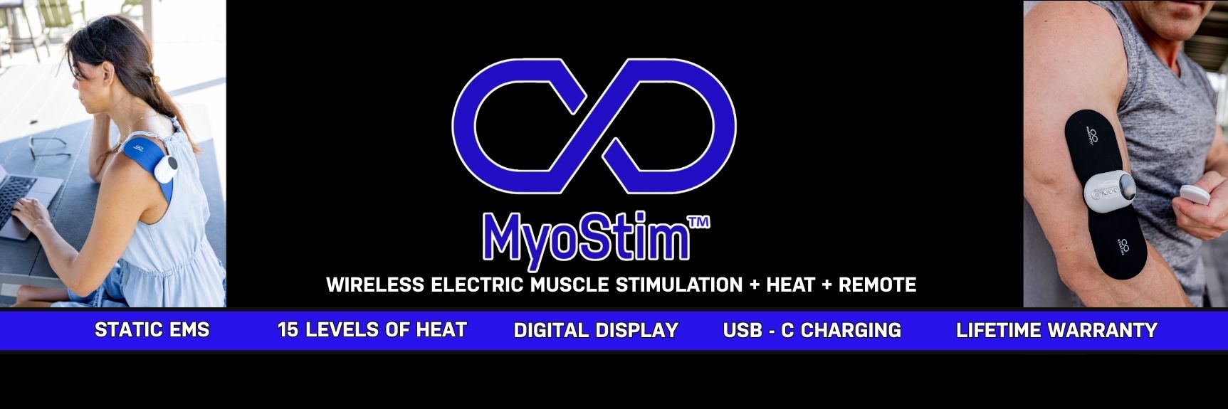 The Myostim2® brings to you the most advanced e-stim technology to help alleviate neuro-muscular pain. The Myostim2® (2nd generation) now has 3 massage modes to choose from, 15 levels of intensity, and also 3 levels of heat! The Myostim2 works by creating a pulsed electric stimulation between 2.5-100 Hz to relax tight muscle and provide pain relief to the user.